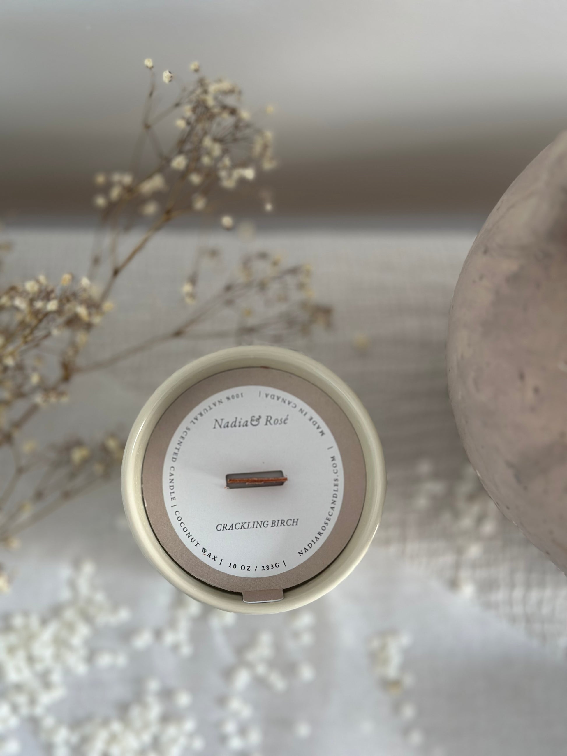 Experience the inviting warmth of the Crackling Birch candle, expertly crafted with 10 oz of clean-burning coconut wax. Housed in a sleek ceramic jar and featuring a wooden wick, it gently crackles as it burns, creating a cozy ambiance reminiscent of a birch wood fire. This best seller offers a refined scent and a calming atmosphere, perfect for elevating any space with an expert touch.
