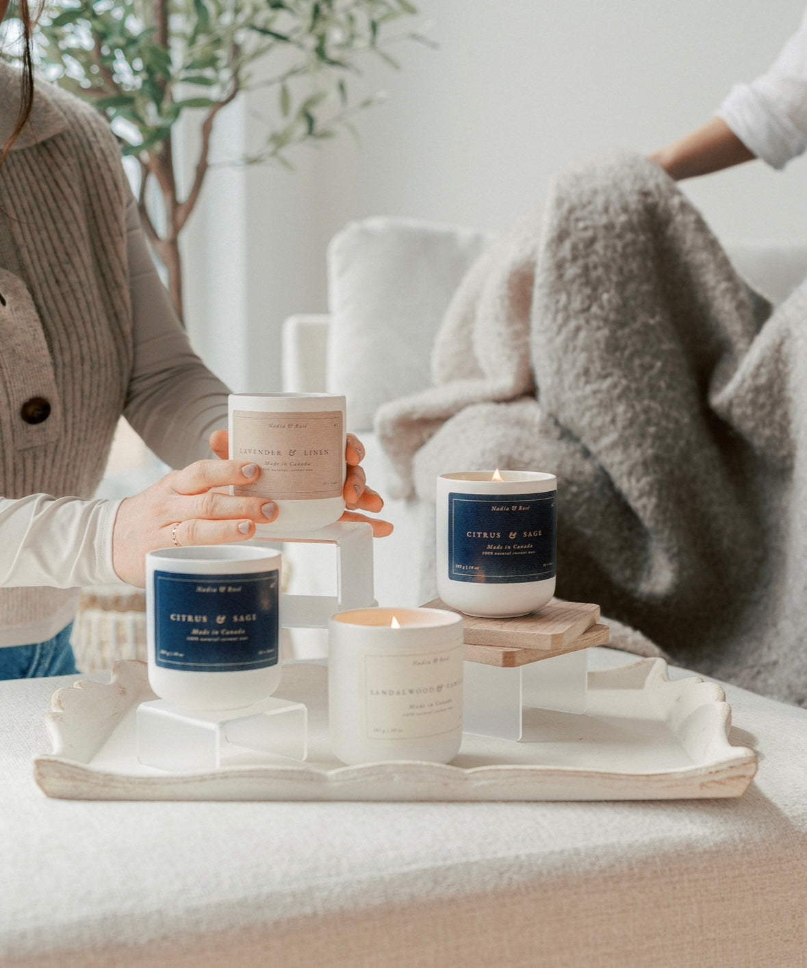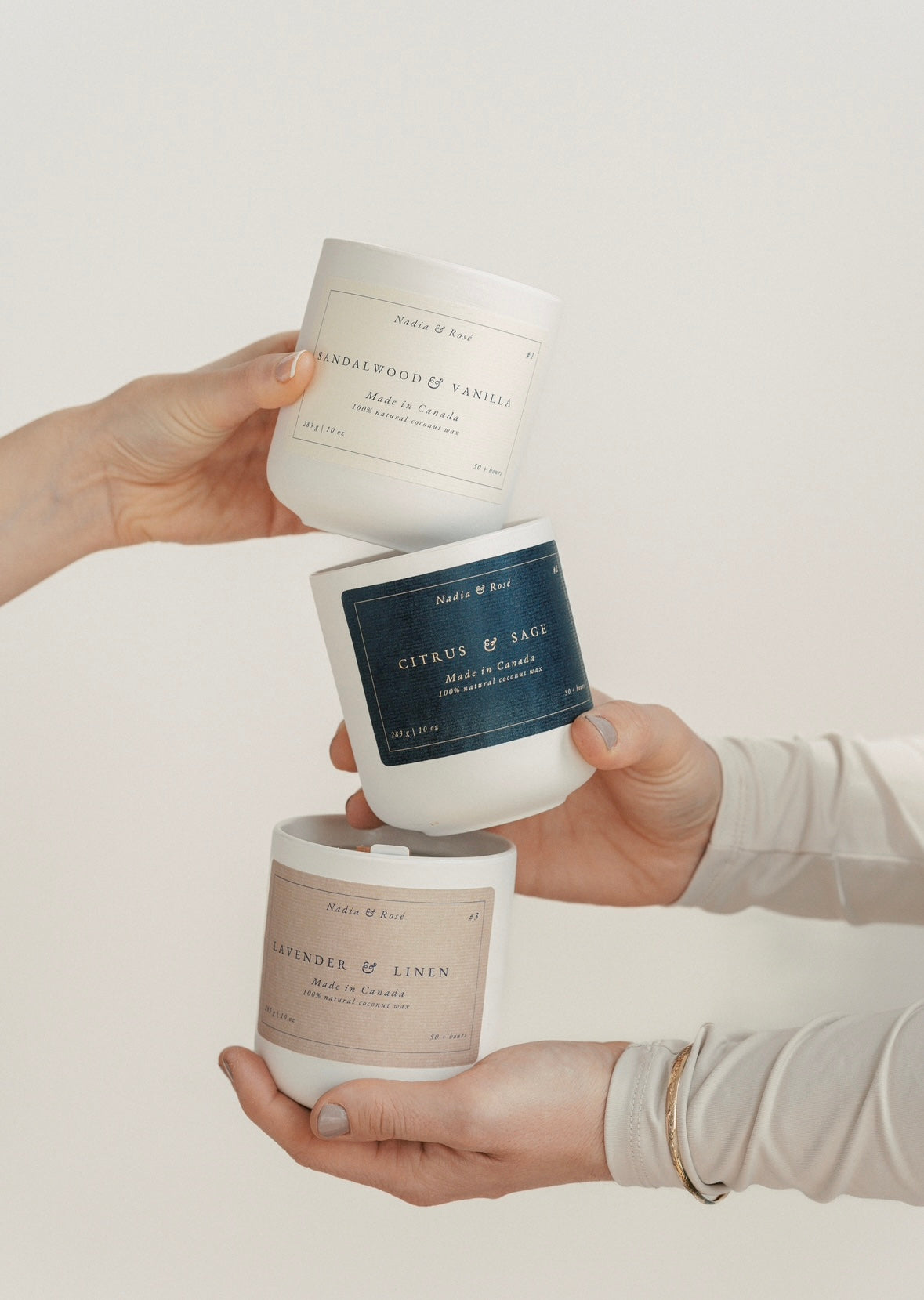 Experience the ultimate relaxation with our Full Collection of 10 oz scented natural coconut soy wax candles. Indulge in the calming scents of Lavender and Vanilla, refreshing Citrus and Sage, and warm Sandalwood and Vanilla. Perfect for creating a soothing atmosphere in any room.